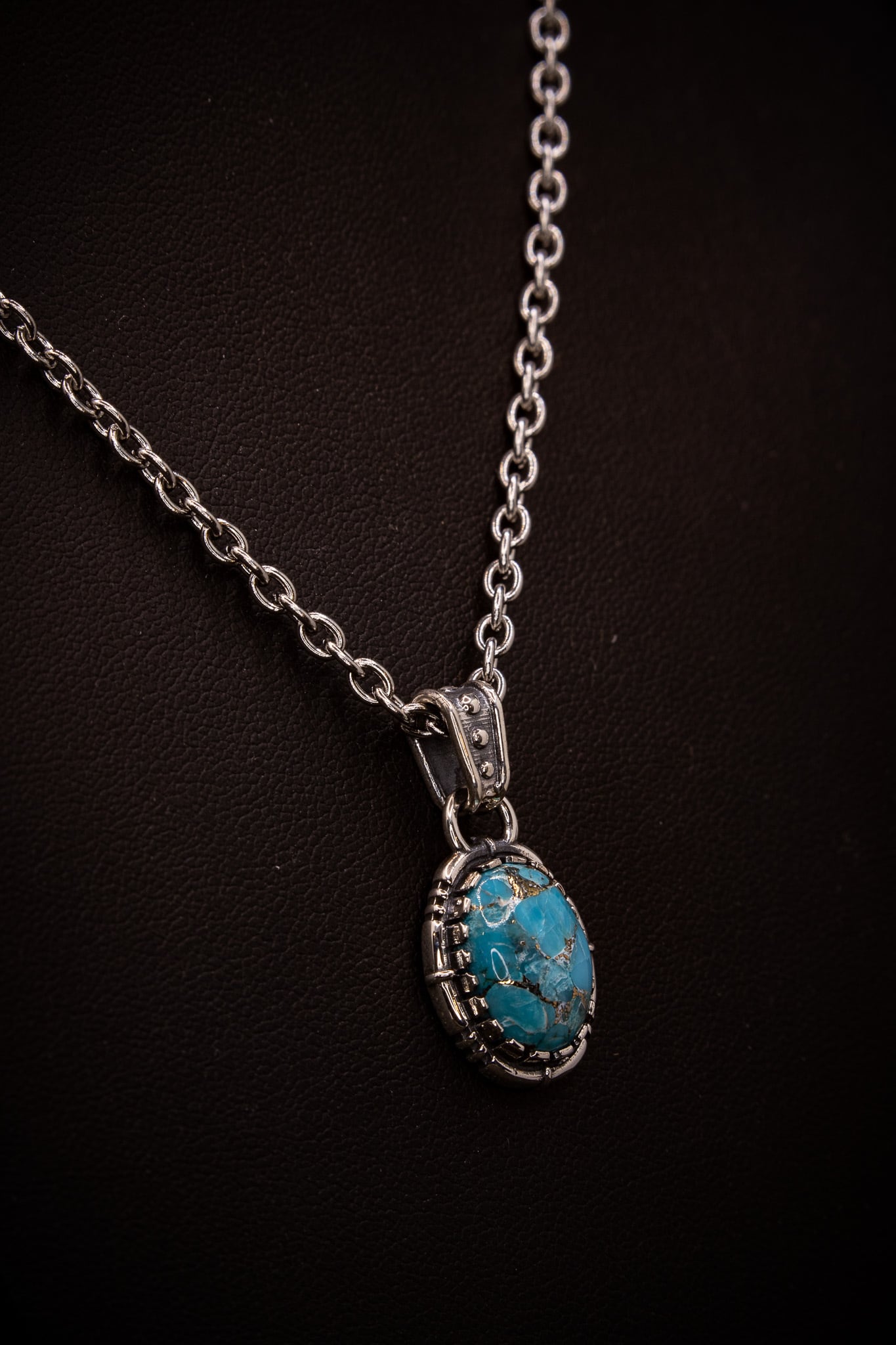 本商品はオーバルの天然コッパーターコイズを美しく魅せる事を念頭にデザインされたペンダントになります。