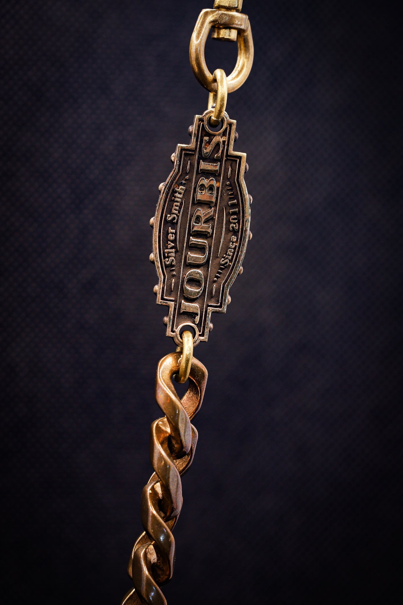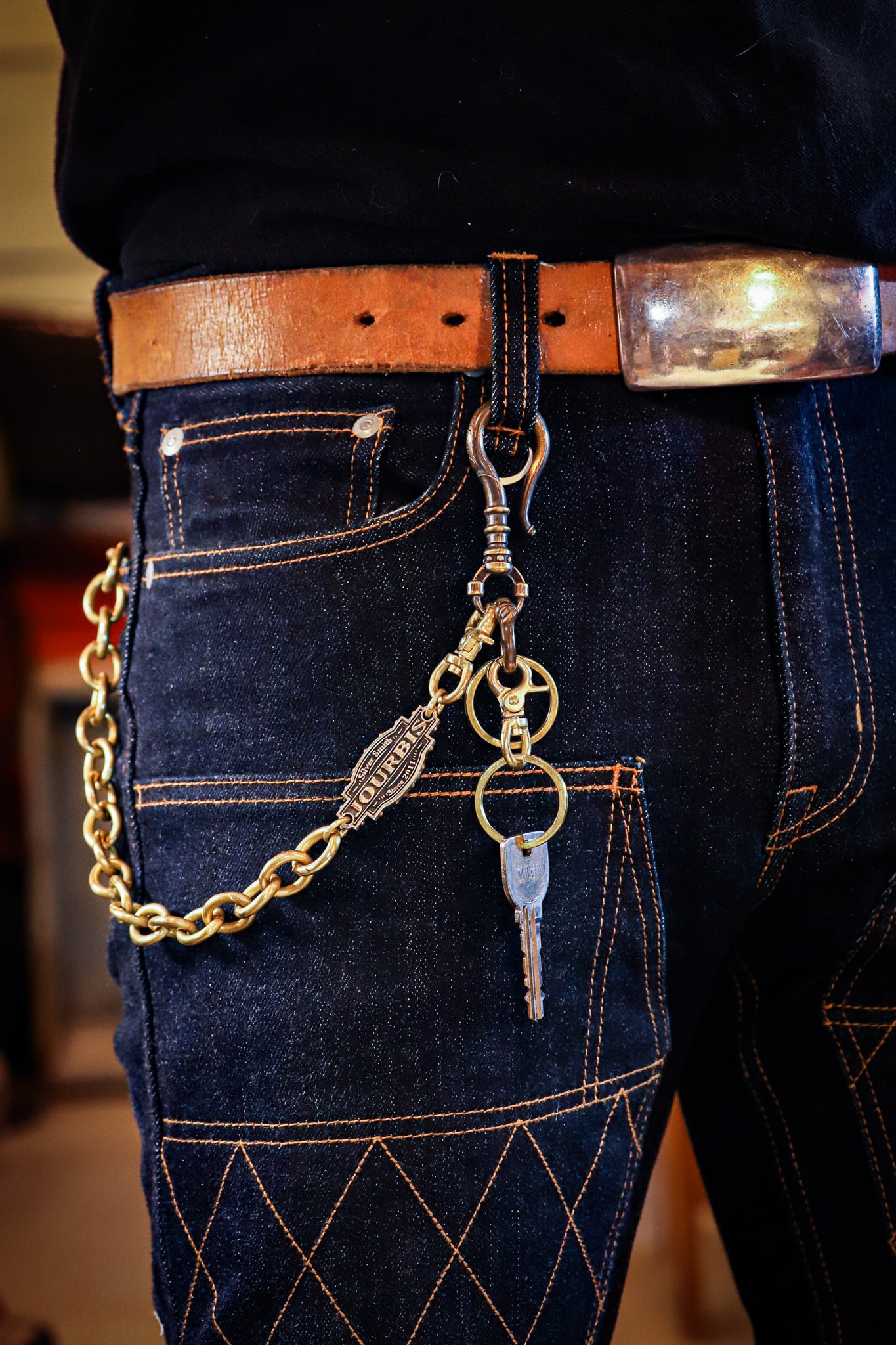 大粒の小豆チェーンにより抜群の存在感を放ち、ライセンスプレートが腰回りのバランスを整えます。